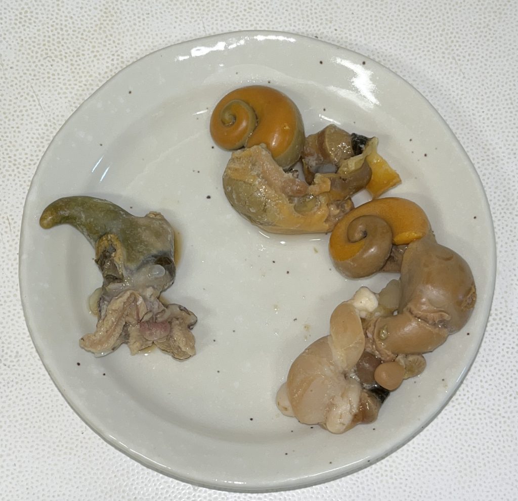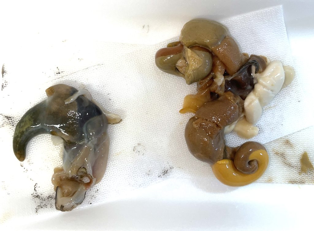 左 アワビの肝  右 つぶ貝の肝