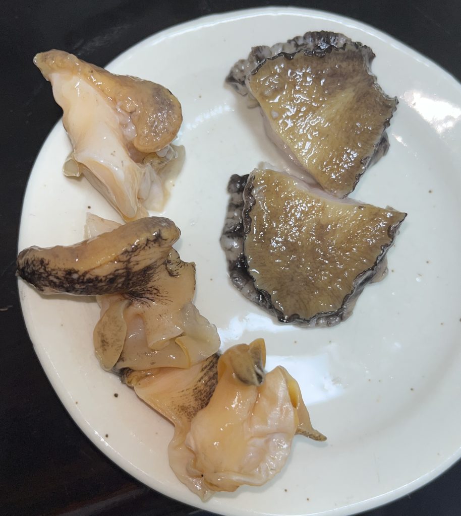 左がつぶ貝(2個分)、右がアワビです。