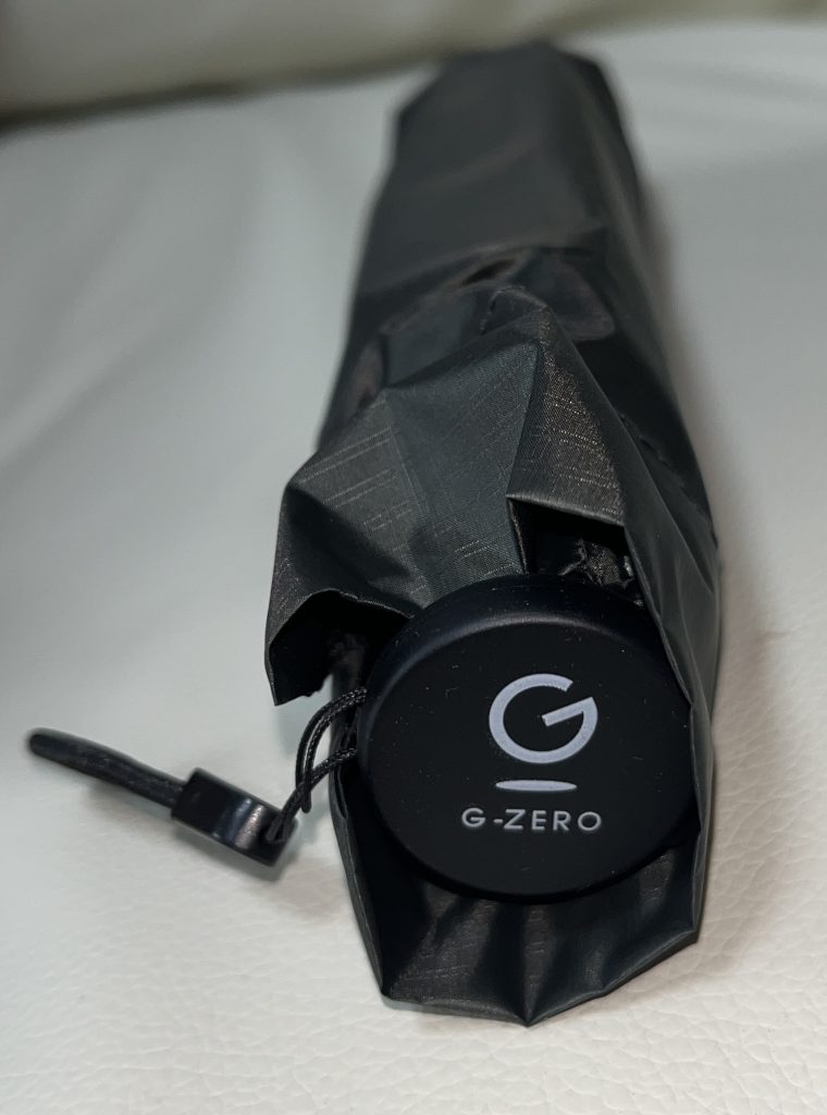 自宅にいくつか折り畳み傘がありますが、この持ち手部分の「G-ZERO」と言う部分を確認して持参します。(我が家では最高の折り畳み傘なので、乾いたのがあれば、こちらを持参しています。)