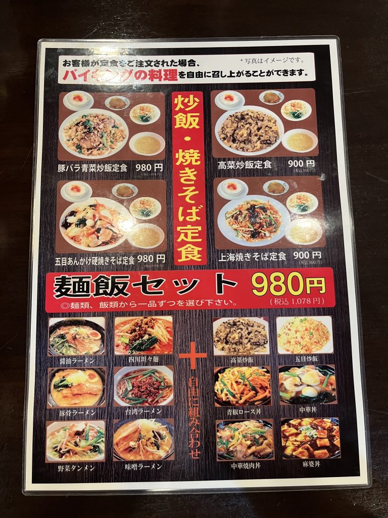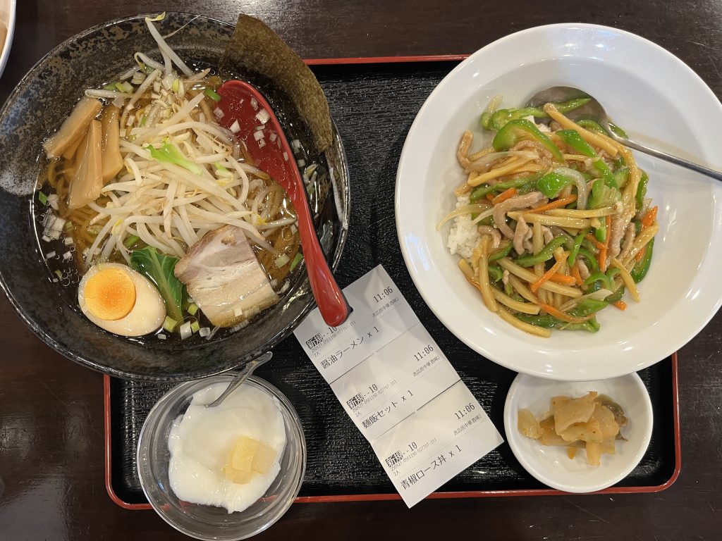 2人で行きましたが、麺飯セット(醤油ラーメン&青椒ロース丼)税込1078円と豚バラ青菜炒飯定食 税込1078円です。2名で2156円。