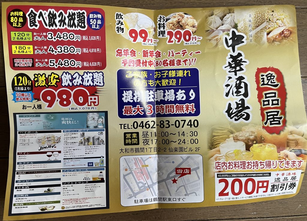 密かに人気急増しているらしい神奈川県大和市の鶴間駅近くの中華酒場「逸品居」(いっぴんきょ)を知人に教わって行って来たので、ご紹介します。