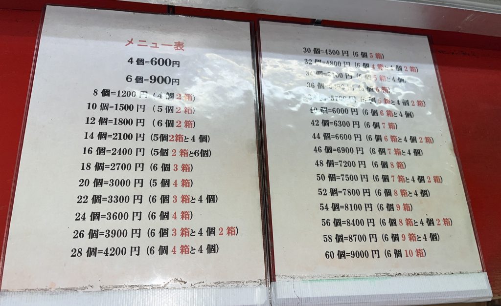 メニューは焼き小籠包1種のみ。数量が選べるので、違いは数だけです。