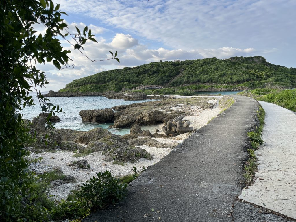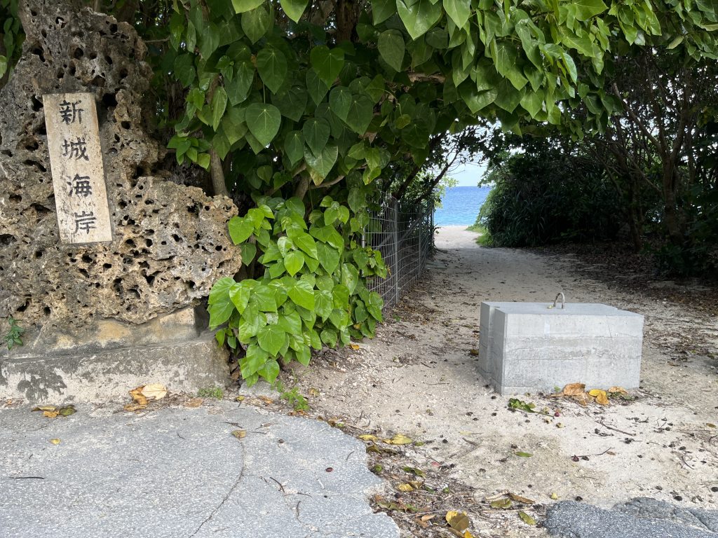 新城海岸の駐車場に車を停めて、ビーチへ向かいました。もう先にビーチが見えています!