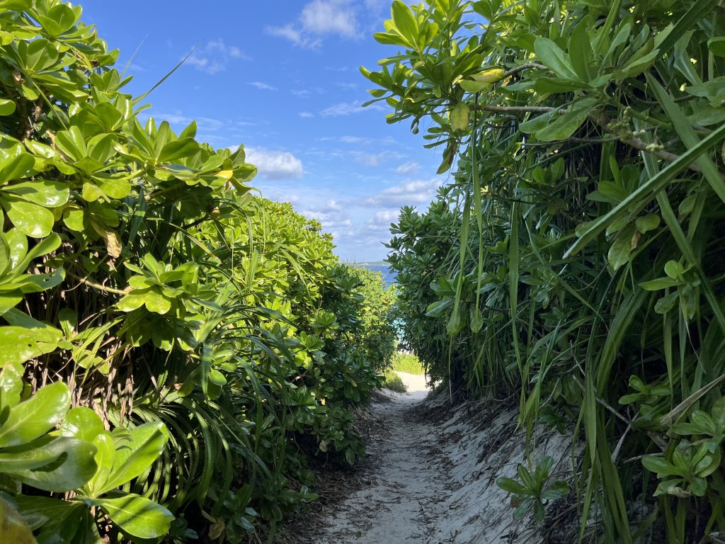 緑を抜けてビーチへ出る、この瞬間の景色が大好きです。