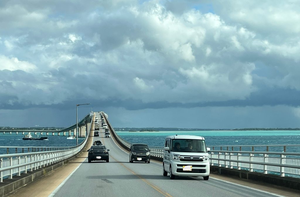 伊良部島から宮古島本島へは、この伊良部大橋で渡って行きます。