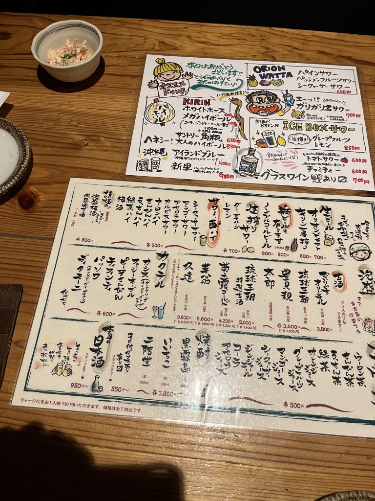 私達は車で行ったのでソフトドリンクのみでしたが、帰りに車でファミマに寄って沖縄のサワーを数本購入して、ホテルで飲みました。