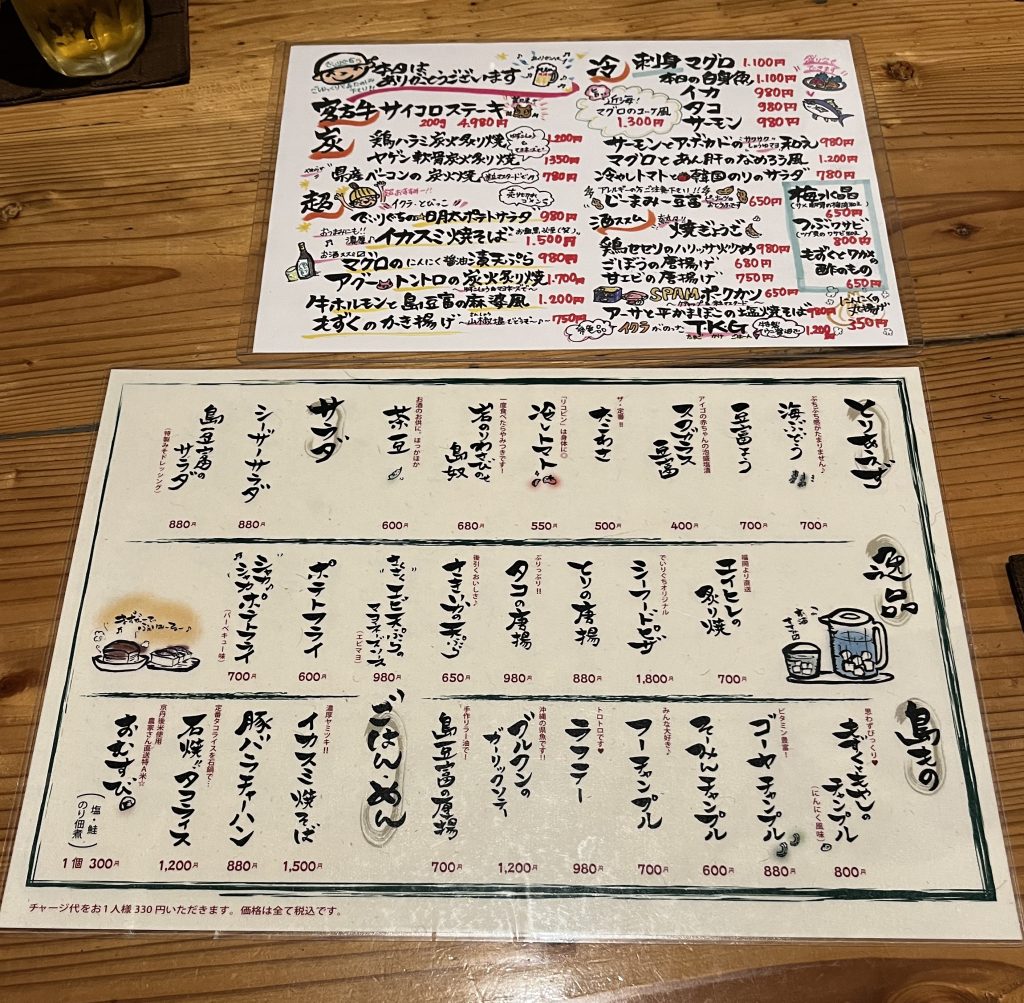 宮古島での夕食に行った、一番人気と言われている居酒屋「出入口」のお食事と予約時の様子、出入口など人気の居酒屋が多くある西里通り近くの駐車場をご紹介します。