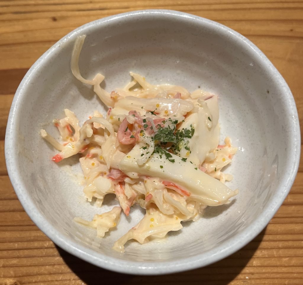 お通し(税込330円)の、いかとカニかまのマヨネーズ和え