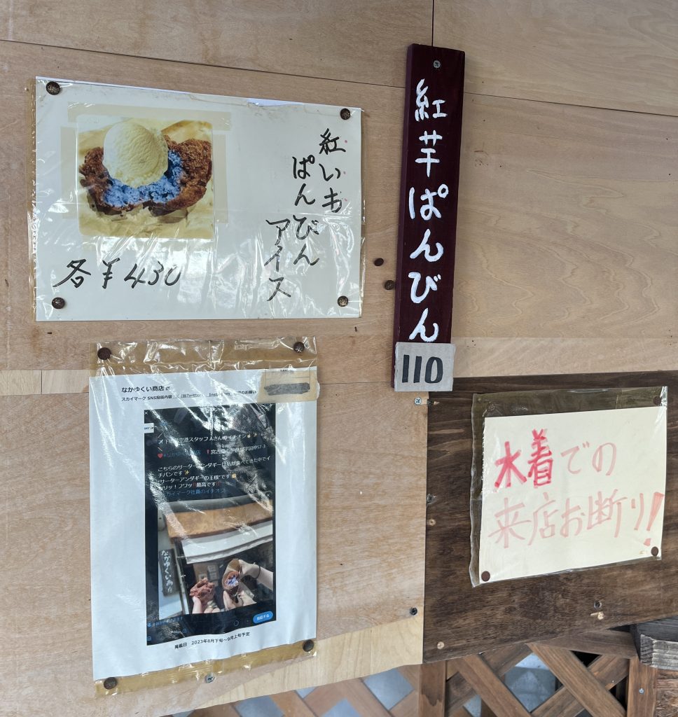 紅芋ぱんびん 110円 紅いもぱんびんアイス 430円です。