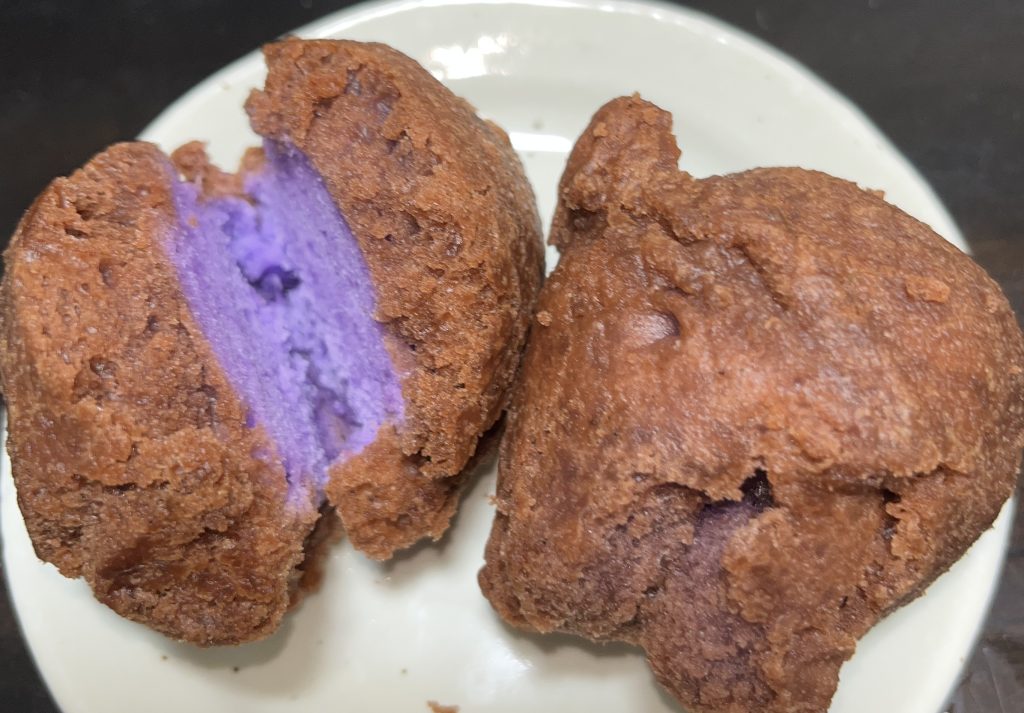 すぐ食べられる状態でのお土産にも使えるので、滅多に食べられない「紅芋」のぱんびん(サーターアンダギー)の味を楽しんで貰えました。