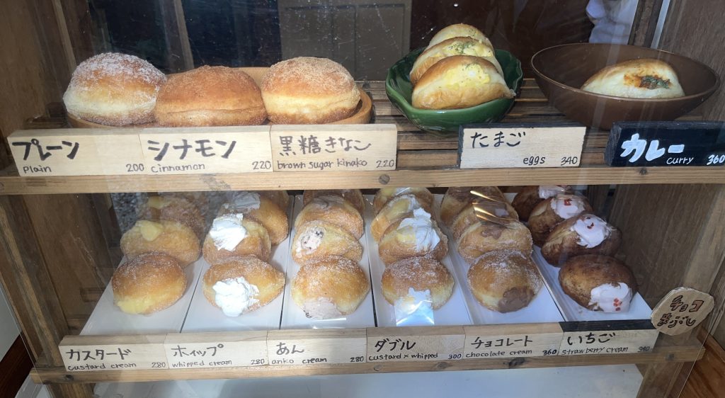 カレー味は、飛行機搭乗前や帰宅後、次の日の朝でも良いかと思い、すぐには食べない予定で購入。シナモンとホイップは、この後行く砂山ビーチで綺麗なビーチを観ながら休憩の時に食べました。