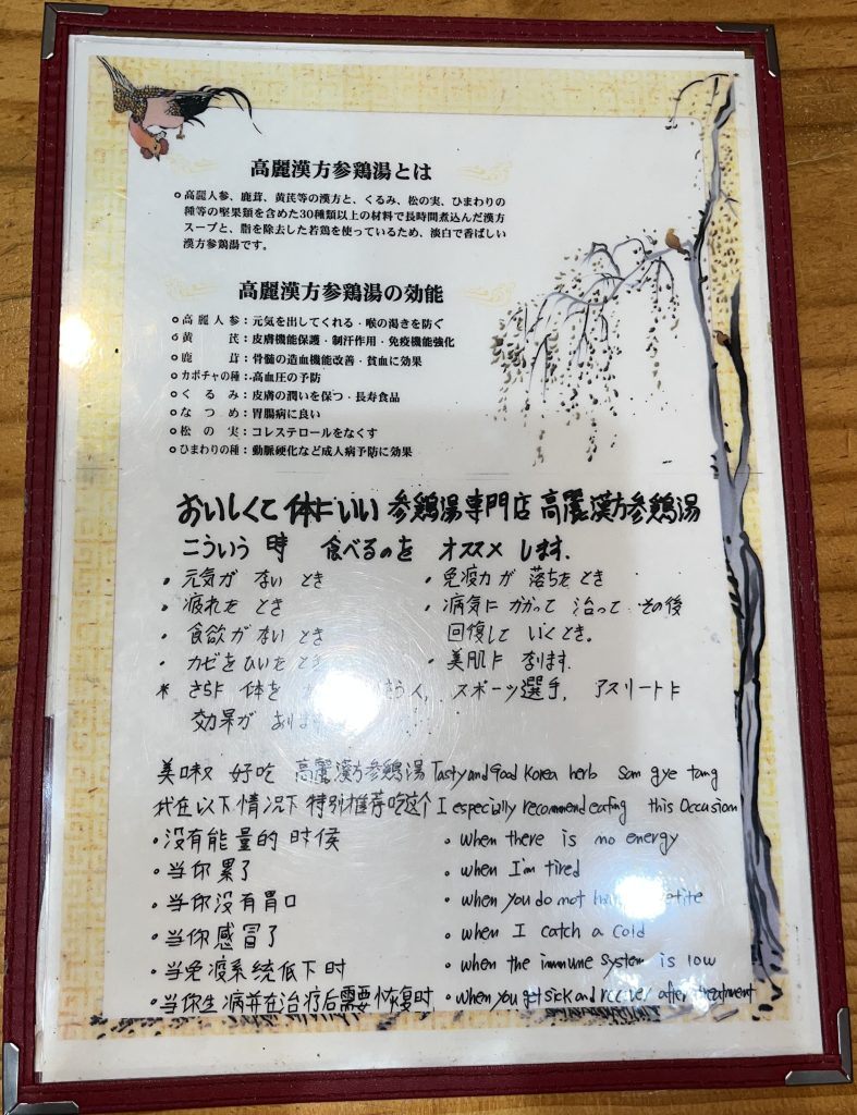 壁にも高麗漢方参鶏湯の説明があります。