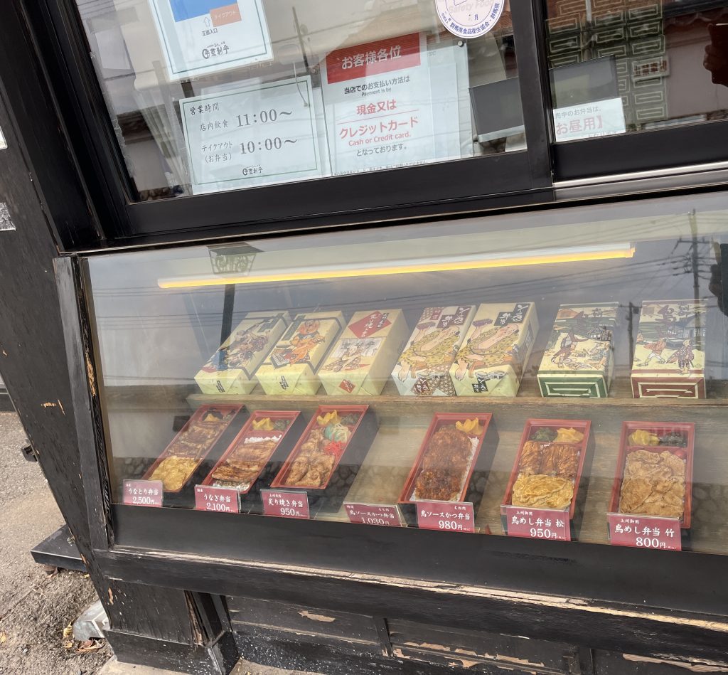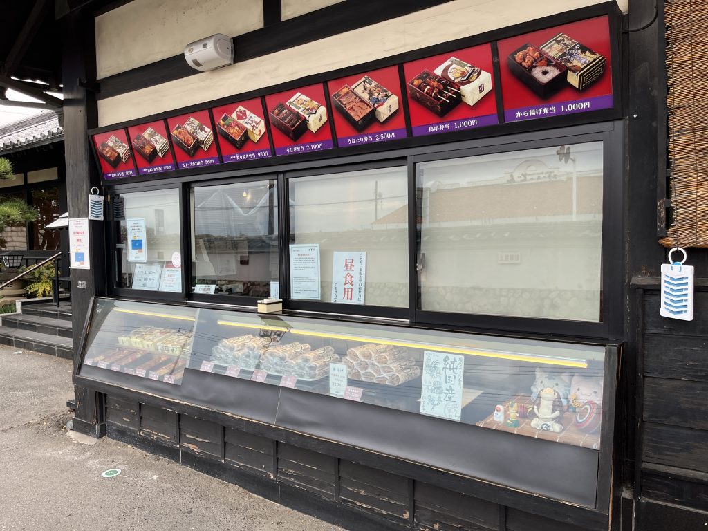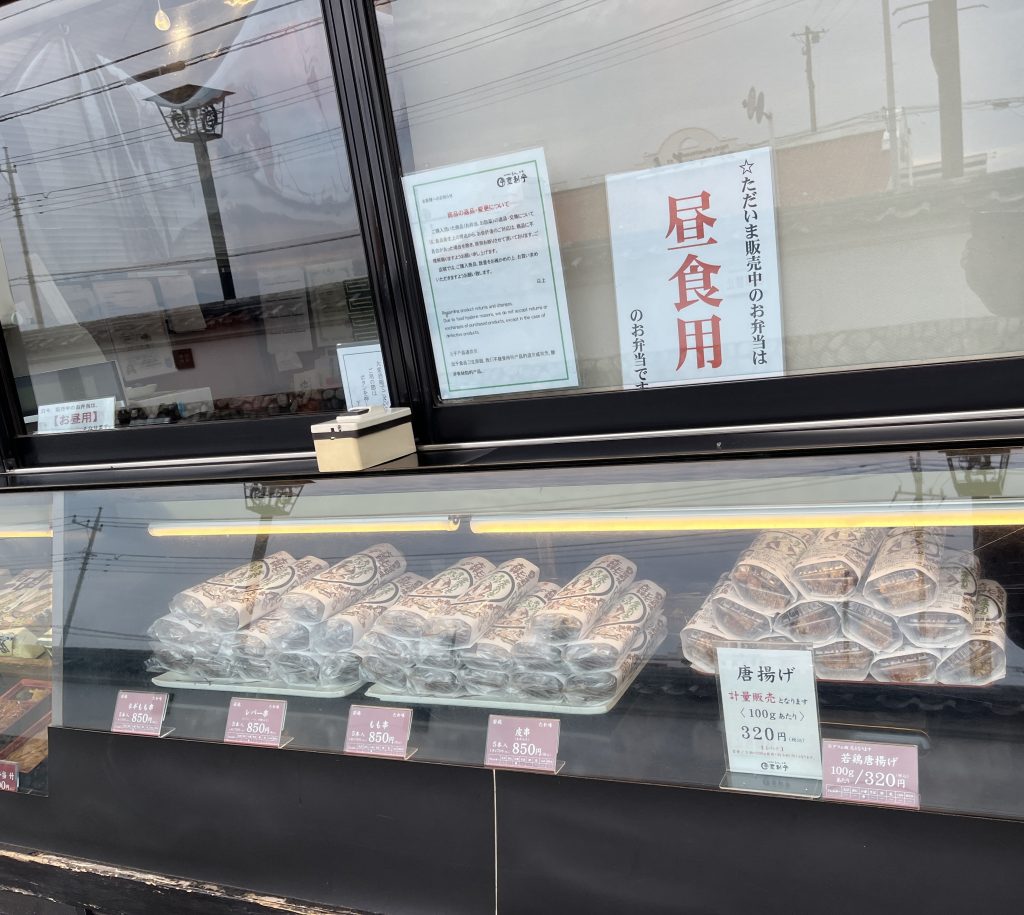 店舗の窓下には美味しそうなお弁当が見本にあります。