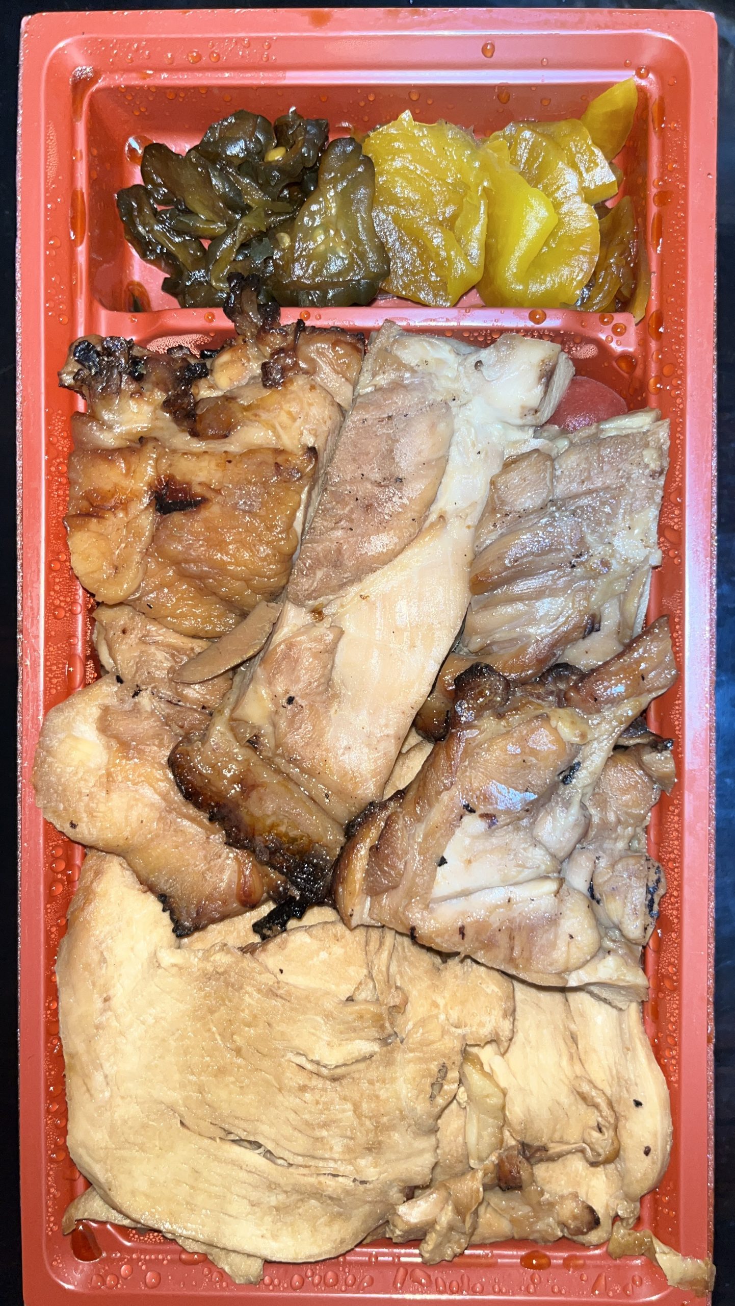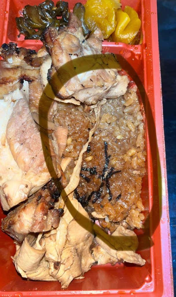 お肉は、お弁当の割に硬くなりすぎず、とにかく美味しい鶏肉です。
